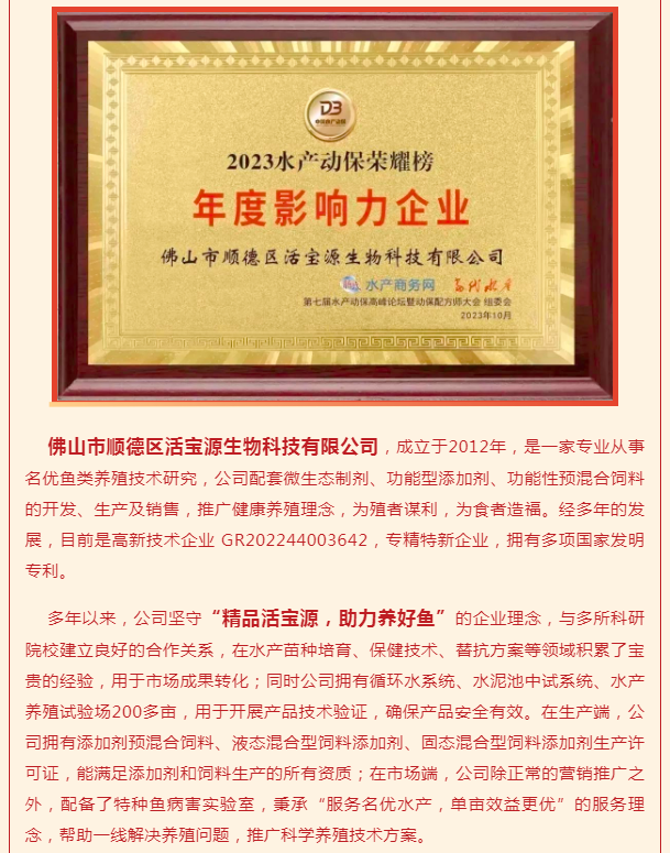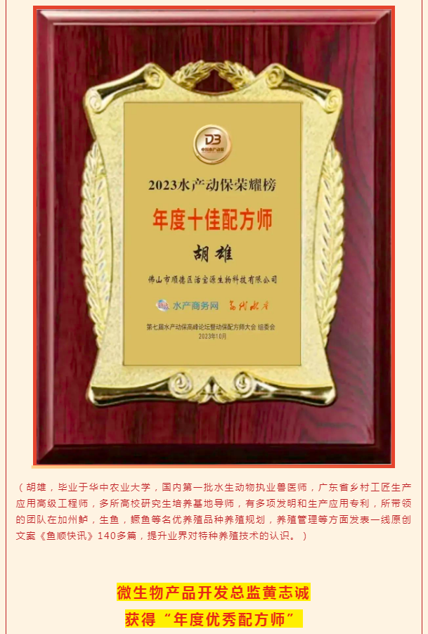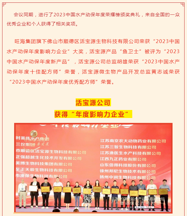 【重磅】熱烈祝賀活寶源獲2023年中國水產(chǎn)動(dòng)保論壇四項(xiàng)大獎(jiǎng)